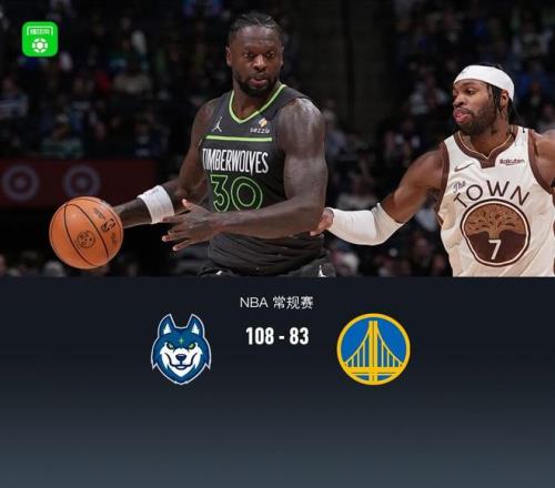 北京時間1月27日NBA 常規賽,勇士背靠背客場再戰森林狼。本場勇士庫裏、格林、梅爾頓、霍福德均缺陣,森林狼愛德華茲缺陣。首節雙方持續防守拉鋸緊咬比分,次節森林狼找到進攻狀態蘭德爾領銜拉大分差,半場森林狼53-38勇士,下半場勇士進攻依舊低迷,森林狼持續拉大分差,末節最大領先32分,最終森林狼108-83勇士就此結束5連敗。