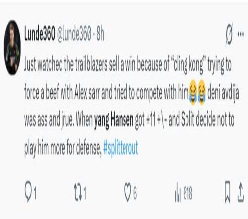賽後開拓者球迷、開拓者媒體、美國媒體都為楊瀚森此役的表現點讚:克林根與薩爾發生了一次衝突導致球隊的勝利溜走,而楊瀚森在場+11明顯更出色,可斯普利特卻不讓他在關鍵時刻參與防守。