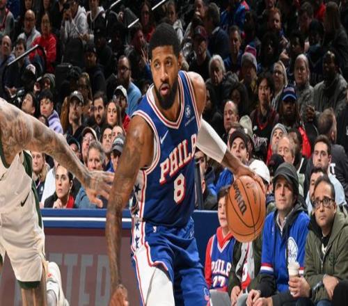 保羅-喬治此役三分15中9狂轟32分5籃板5助攻2搶斷,9記三分追平76人隊史單場三分最高紀錄。