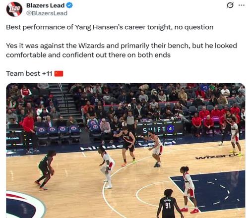 賽後開拓者媒體Blazers Lead也發文稱讚到:“毫無疑問,今晚是楊瀚森生涯最佳表現,雖然對手是奇才,主要對陣的還是輪換球員,但他在攻防兩端打得遊刃有餘,信心滿滿,正負值+11更是全場最佳。”