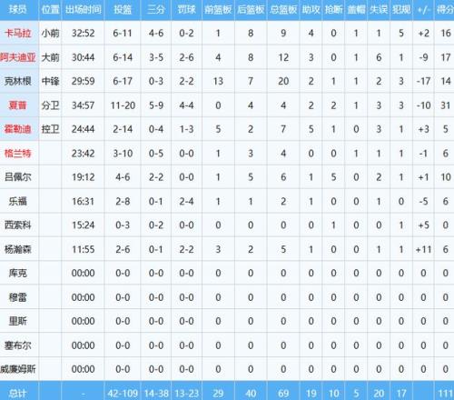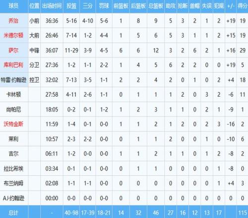 奇才那邊,24屆榜眼秀薩爾打出生涯之戰,出手29次中11球,砍下29分12板3助2斷6帽,正負值+16,與克林根(14分20板,正負值-17)對位中更勝一籌。