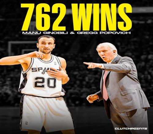 其中,鄧肯與波波維奇搭檔拿下1001場勝利,排名曆史第一,曆史前十中僅有兩隊搭檔是現役球員與現役主帥。