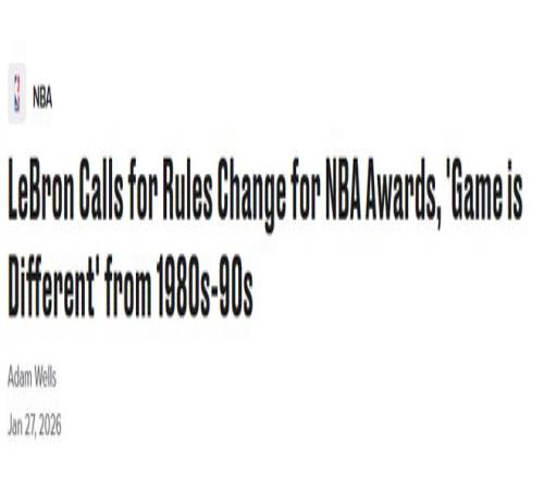 再休一場將無緣評獎!詹姆斯呼籲NBA改規則:如今比賽強度不一樣_24直播網