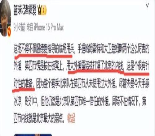 足智多謀!貴叔用場均7分之人打爆北京隊,賈磊:不得不佩服貴叔_24直播網