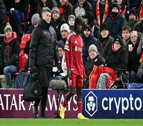 北京時間1月29日,歐冠聯賽階段第8輪,利物浦主場6-0大勝卡巴拉赫,保住利物浦躋身歐冠前八名,直接晉級歐冠16強。但在本場比賽中,利物浦再次遭遇傷病襲擾。開場僅3分鍾,右後衛傑裏米·弗林蓬被迫傷退,他似乎在追趕皮球時拉傷了腿筋,隨後一瘸一拐地走下場。隨後,斯洛特被迫換上了32歲的日本老將遠藤航。