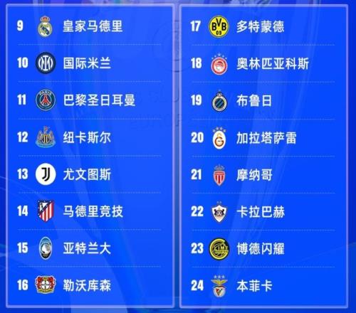 也就是說按著比賽成績來分,目前隻存在四組比賽對陣,分別是摩納哥、卡拉巴赫對巴黎聖日耳曼、紐卡斯爾,布魯日、加拉塔薩雷對尤文圖斯、馬德裏競技,博德閃耀、本菲卡對皇馬、國米,多特蒙德、奧林匹亞科斯對亞特蘭大、勒沃庫森。
