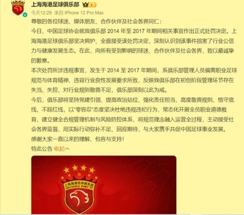 國安和上港為啥麵對足協罰單的態度截然相反會否被追加處罰呢_24直播網
