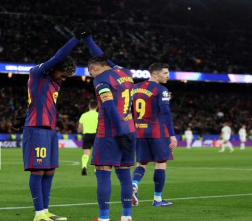 亞馬爾、萊萬多夫斯基和拉菲尼亞,是巴薩標誌性的進攻三叉戟,他們在歐冠對陣哥本哈根的比賽中聯袂首發,並且三人皆有進球入賬。