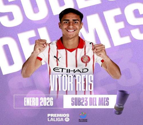 官方消息,赫羅納後衛維托爾-雷斯當選西甲官方1月最佳U23球員。