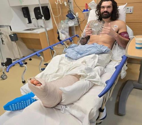 隨後沒多久,亞當斯自己在社媒上曬出了成功完成手術的照片,可以明顯看出來,他的左腳踝上纏著厚厚的繃帶。