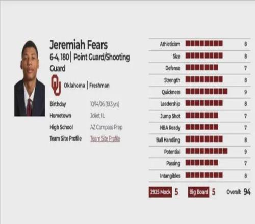 我放上他在NBA draft 網站的最後一份選秀報告,選秀綜合評分94分,預計選秀順位首輪第5順位(實際第7順位),選秀模板道格-裏弗斯\布蘭登-奈特.