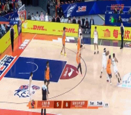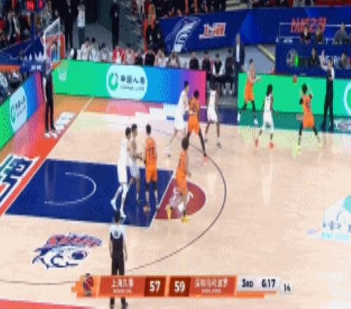 6分17秒,上海落後2分,盧偉重新換回白邊,洛夫頓翻身跳投再得手,偰李永煒打進個人第3記中投,上海馬上一波6-0反超深圳63-59。