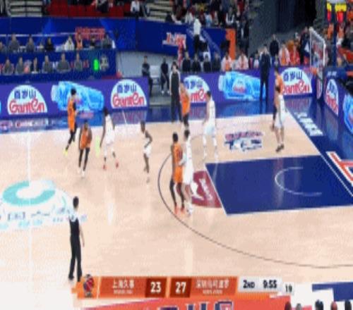 節末史密斯飆進高難度三分+造犯規連得4分,賀希寧頂著弗格犯規飆進後撤步打板三分,王哲林洛夫頓打出連線暴扣得手,雙方你追我趕,打法非常開放,半場結束,憑借偰李永煒打進的壓哨中投,上海51-51打平深圳。