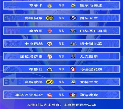 北京時間1月30日晚上,2025-26賽季歐洲冠軍聯賽淘汰賽附加賽抽簽結果正式出爐,16支隊捉對廝殺,穆裏尼奧的本菲卡再次遇到皇馬,國米對陣博德閃耀,大巴黎與摩納哥迎來法甲內戰。
