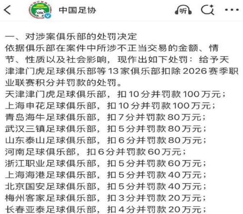 麵對這張沉甸甸的罰單,多數俱樂部選擇緘默以對,靜觀其變。