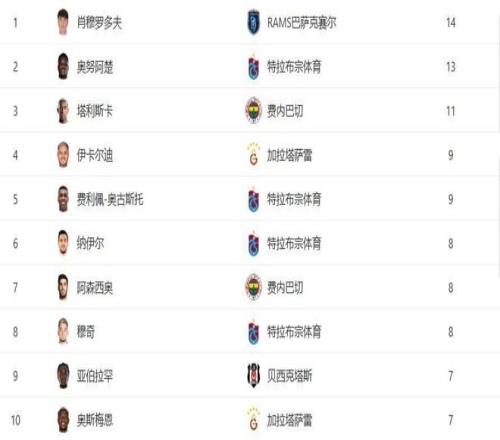 算上本場比賽的進球,本賽季土超射手榜上,肖穆羅多夫以14球繼續領跑,要知道在這位烏茲別克斯坦鋒霸身後是昔日國米隊長伊卡爾迪(9球)和那不勒斯曾經的大腿奧斯梅恩(7球),這兩位曾在意甲風光無限的金靴得主,現在在土耳其的賽場上竟被一位“意甲棄將”遠遠甩開。