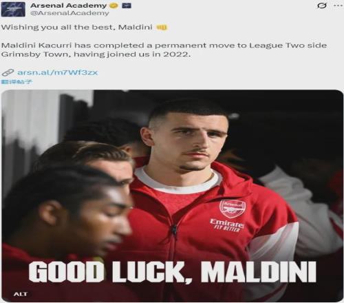 官方:阿森納宣布馬爾蒂尼-卡庫裏轉會加盟了英乙球隊格裏姆斯比。