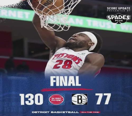 此役活塞贏了53分之多,創造隊史單場最大贏球分差。