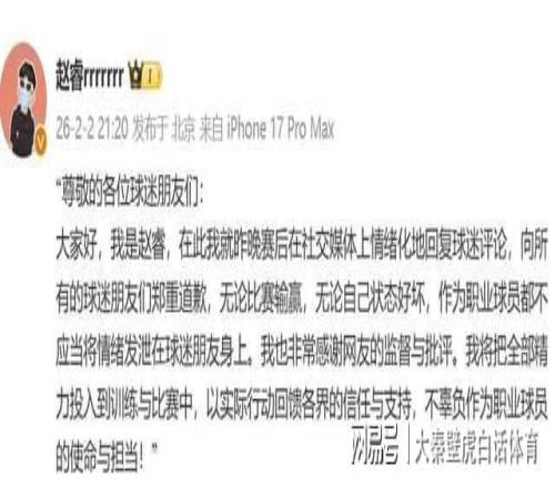 冷靜下來之後,趙睿也在第一時間道歉。