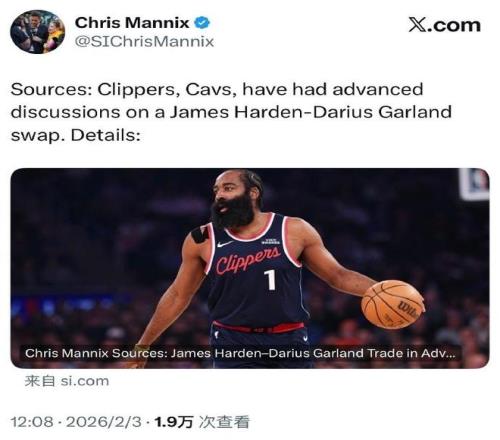如今根據《體育畫報》名記Chris Mannix報道,快船與騎士正深入討論用哈登換加蘭的交易,但其中尚且存在薪資匹配、選秀權補償、球員意願等關鍵障礙因素。