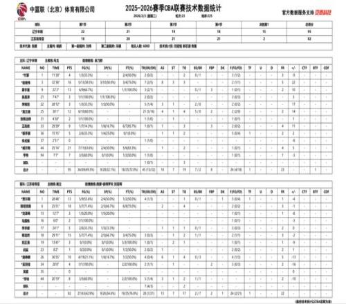 2025-2026賽季CBA常規賽第二十三輪,遼寧本鋼對陣江蘇肯帝亞的比賽於3日晚在遼寧體育館進行,雙方在40分鍾常規時間戰平,遼寧本鋼隊最終通過加時賽,以95:82擊敗江蘇肯帝亞。