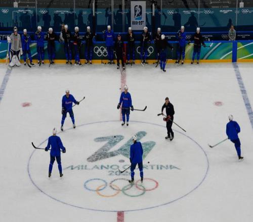 2月3日,法國男子冰球隊在米蘭聖朱利亞冰球館訓練。(美聯社)
