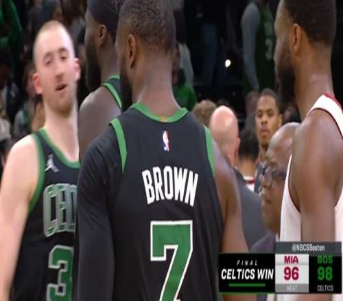 凱爾特人最多落後22分,最終以98-96大逆轉熱火,一波5連勝,直接反超尼克斯升上東部第2.