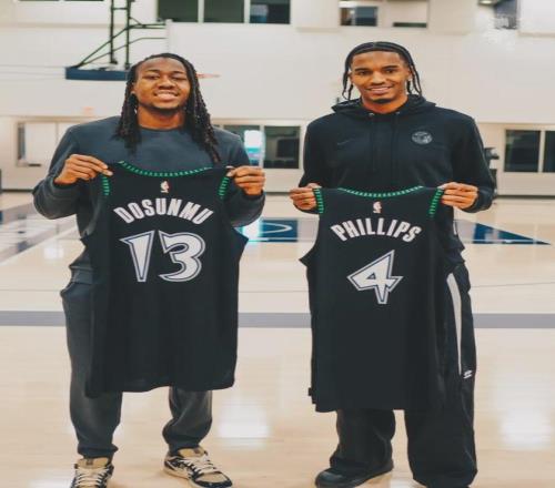 迪林厄姆是2024年首輪8號秀,當年森林狼用了1個首輪簽+1個首輪互換才從馬刺手裏搶來他。本賽季迪林厄姆場均3.5分1.2籃板1.7助攻,投籃命中率33.3%。倫納德-米勒場均2.3分1.3籃板0.3助攻,這倆人很難進輪換陣容。