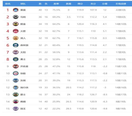 開拓者贏球後2連勝,戰績25勝28負,排名從西部第十升到第九,今日沒有比賽的快船躺掉排名,從西部第九變成第十。灰熊輸球後2連敗,戰績20勝31負排名西部第11。