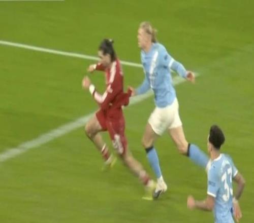 比賽最後階段,利物浦門將阿利鬆棄門參與進攻,切爾基抓住機會從中場吊射空門。就在皮球滾向球網之際,哈蘭德與索博斯洛伊雙雙回追。過程中,索博斯洛伊拉拽哈蘭德球衣,被認定為“破壞明顯進球機會”;而哈蘭德隨後也回手拉了對方一把。