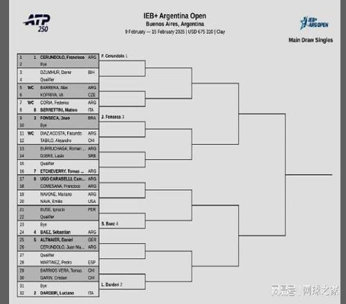 ATP250阿根廷布宜諾斯艾利斯站:本土名將F-塞倫多羅、意大利人達爾德裏位列前兩號種子,衛冕冠軍是巴西新星豐塞卡。