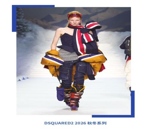 與此同時,冰球也正在經曆類似的轉向。伴隨《巔峰對決》全球範圍的熱播,冰球的速度、碰撞與防護裝備美學,開始吸引時尚品牌的注意。DSQUARED2幾乎是最敏銳捕捉到這一變化的品牌之一。它將冰球裝備中那種防禦性、力量感極強的視覺元素,與品牌一貫的性感、張揚氣質結合,形成一種非常當代的“運動性感”。冰球在這裏不再是冷門項目,而是一種尚未被完全開發的風格資源。