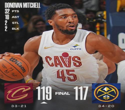 北京時間2月10日,NBA常規賽:騎士客場119-117逆轉掘金。此役過後,騎士33勝21負依然排名東部第四,落後第三的凱爾特人1.5個勝場。掘金34勝20負繼續排名西部第三,落後第二馬刺多達3個勝場,領先第四火箭0.5個勝場。