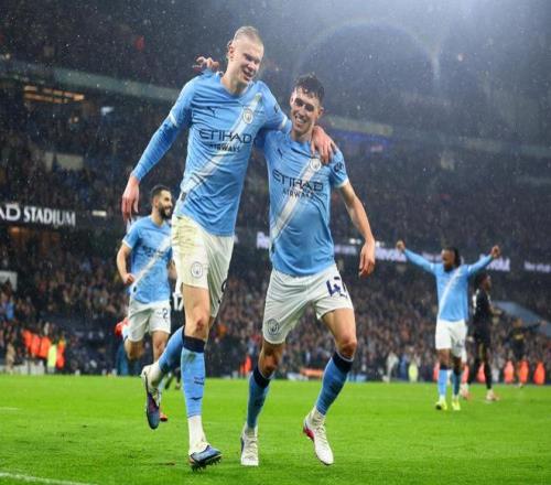 福登(右)在本場比賽為哈蘭德(左)送出助攻,打進了“殺死比賽”的一球。