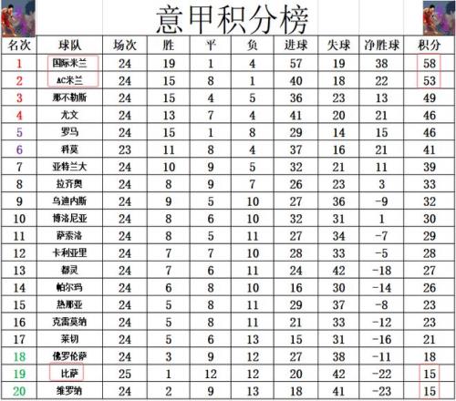 積分榜方麵,AC米蘭今天先賽贏球,現在他們和國米都是賽了24輪,AC米蘭5分之差繼續位居第2,緊追榜首的國米。那不勒斯49分排在第3,尤文,羅馬46分排在第4,第5。
