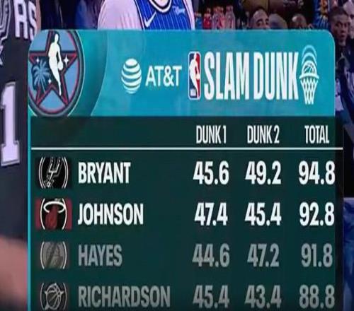 扣籃大賽預賽:卡特布萊恩特、凱沙德約翰遜晉級決賽