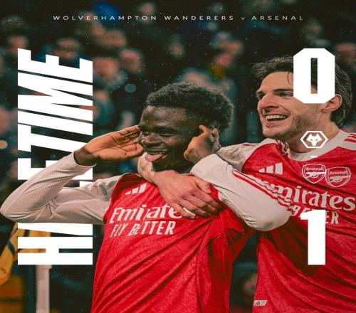 北京時間2月19日,在英超第31輪率先進行的一場比賽中,阿森納依靠薩卡開場5分鍾的進球客場1-0領先狼隊結束上半時的較量。