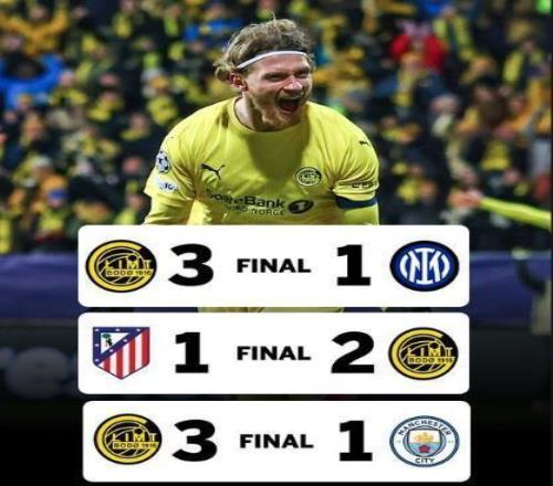 這是挪威俱樂部在歐冠曆史第2次擊敗意甲球隊,上一次還要追溯到1996年羅森博格擊敗AC米蘭。憑借這場勝利,博德閃耀解鎖了一項極為了不起的成就,成為歐冠曆史上第4支達成三連勝的非五大聯賽球隊。此前做到這一點的三支球隊,帕納辛納科斯、本菲卡、聖彼得堡澤尼特,無一不是各自時代的梟雄。更恐怖的是,閃耀哥的三連勝含金量極高:客場2-1勝馬競、主場3-1勝曼城、主場3-1勝國米,刀下不斬無名之輩。