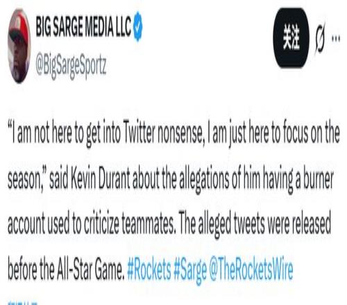 此前,美媒曬出了疑似杜蘭特小號的一些言論,當然,目前沒有實質證據可以證明這些賬號的內容就是杜蘭特發的—
