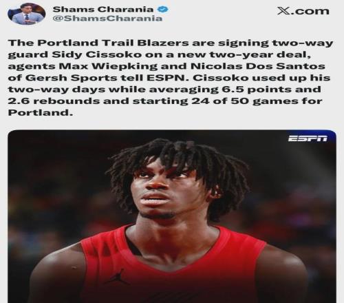 爆料王Shams:開拓者與雙向合同後衛西迪-西索科,重新簽約一份兩年合同。