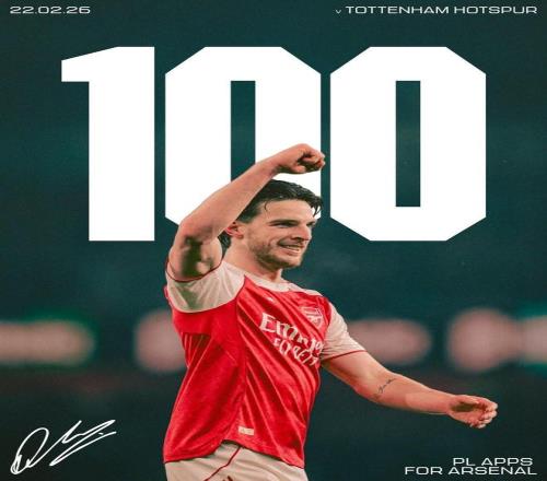 英超第27輪,阿森納客場對陣熱刺,賴斯首發出戰,迎來槍手生涯第100次英超出場的裏程碑之戰。