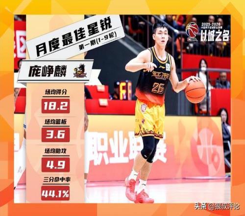 在常規賽10-23輪的比賽中,龐崢麟出戰14場。在他場均出場的32分鍾裏,能夠得到15分、2.8籃板、5.8助攻的數據,罰籃命中率82.3%。龐崢麟在本月度4次得到20+的單場得分,其中包含一場26分、8籃板、13助攻的“準三雙”數據。