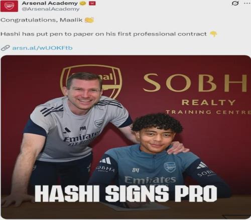現年17歲的哈希在2022年12月加盟阿森納青訓,這名極具創造力的攻擊型中場已經是槍手u18的一員。