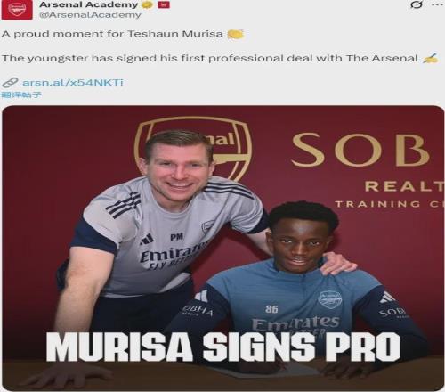 官方:阿森納宣布和特尚-穆裏薩簽下了他的首份職業合同。