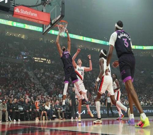 森林狼贏開拓者這場,最後簡直有點喜劇了: