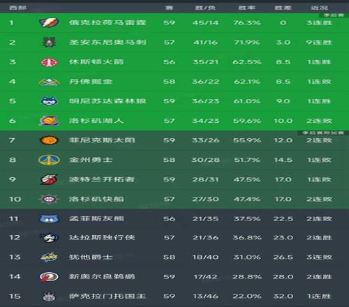 北京時間2月25日,隨著湖人失絕殺,109-110憾負魔術,森林狼124-121險勝開拓者,今天的NBA常規賽結束了所有比賽,海角HJDO43.CCM看看西部的最新排名!