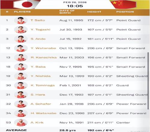 而後,日本男籃12人名單也誕生,包括了阿萊克斯-柯克、安藤誓哉、富堅勇樹、原修太、渡邊雄太、齊藤拓実、馬場雄大、幸樹、渡邊飛勇、西田優大、富永啟生、金近廉,此前歸化的內線核心霍金森並不在上麵,取代的是另一位歸化球員阿萊克斯-柯克。