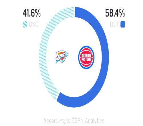 北京時間2月26日,NBA常規賽迎來活塞與雷霆的比賽!主場作戰的活塞,賽前以42勝14負穩居東部第一。上一場與西部第二馬刺的強強對決中遺憾輸球,五連勝被終結,此役杜倫對位文班亞馬砍下25分14籃板表現不俗,但核心坎寧安26投5中僅得16分10助攻,狀態低迷導致球隊失利,這也暴露出年輕球隊在高端局中的狀態不穩。反觀雷霆,賽前以45勝14負仍穩居西部第一。昨天雷霆以殘陣116-107擊敗猛龍,豪取三連勝,雖然亞曆山大和傑倫威缺陣,但卡森華萊士轟下全場最高的27分,以賽亞喬、多特、卡魯索均表現不俗。本場是聯盟榜首之爭,活塞如果輸球,雷霆重回聯盟第一,杜倫和坎寧安必然會借助主場的優勢發力拿下比賽!美媒ESPN預測本場比賽,雷霆勝率41.6%,活塞勝率58.4%。