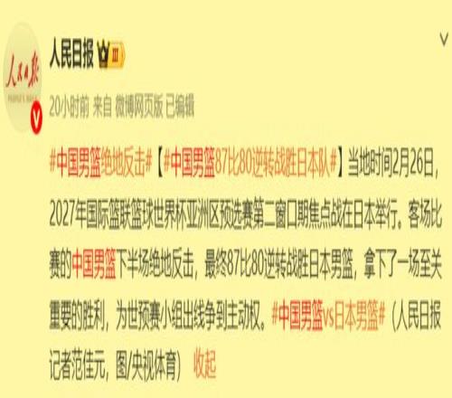 簡直太有排麵了!中國男籃擊敗日本,人民日報和央視海角社区苹果在线入口紛紛點讚,郭士強同時擁抱趙繼偉趙睿,堅持原則終獲回報!