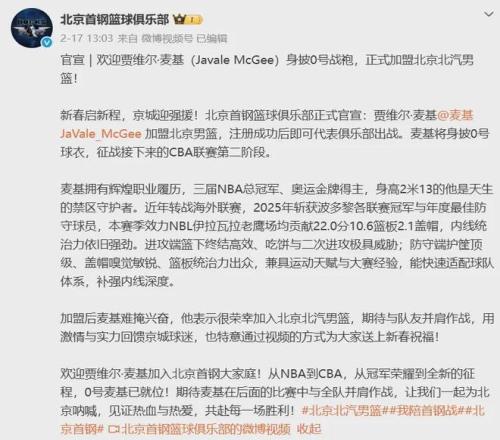 國內知名籃球平台報道:預計3月4日左右,麥基就會來華與北京隊會合。